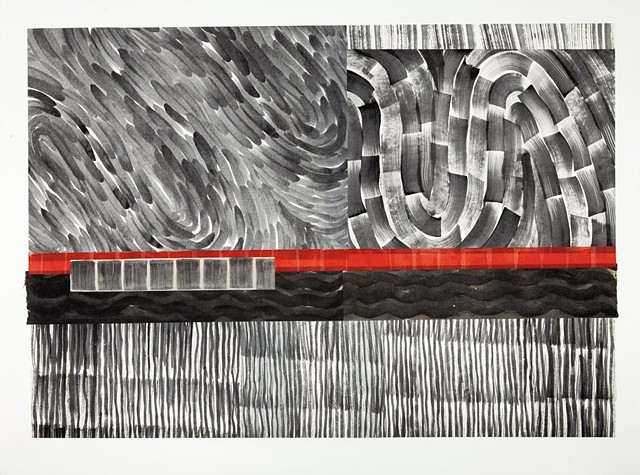 Created during the early months of the Covid pandemic, These chine-colle` monoprints and collages served as meditations on events which captured and enmeshed our daily lives. Both Covid and Black Lives Matter movement influenced these meditations. Overall, these abstract studies investigate the challenge of stabilizing turbulence in a time of volatility.